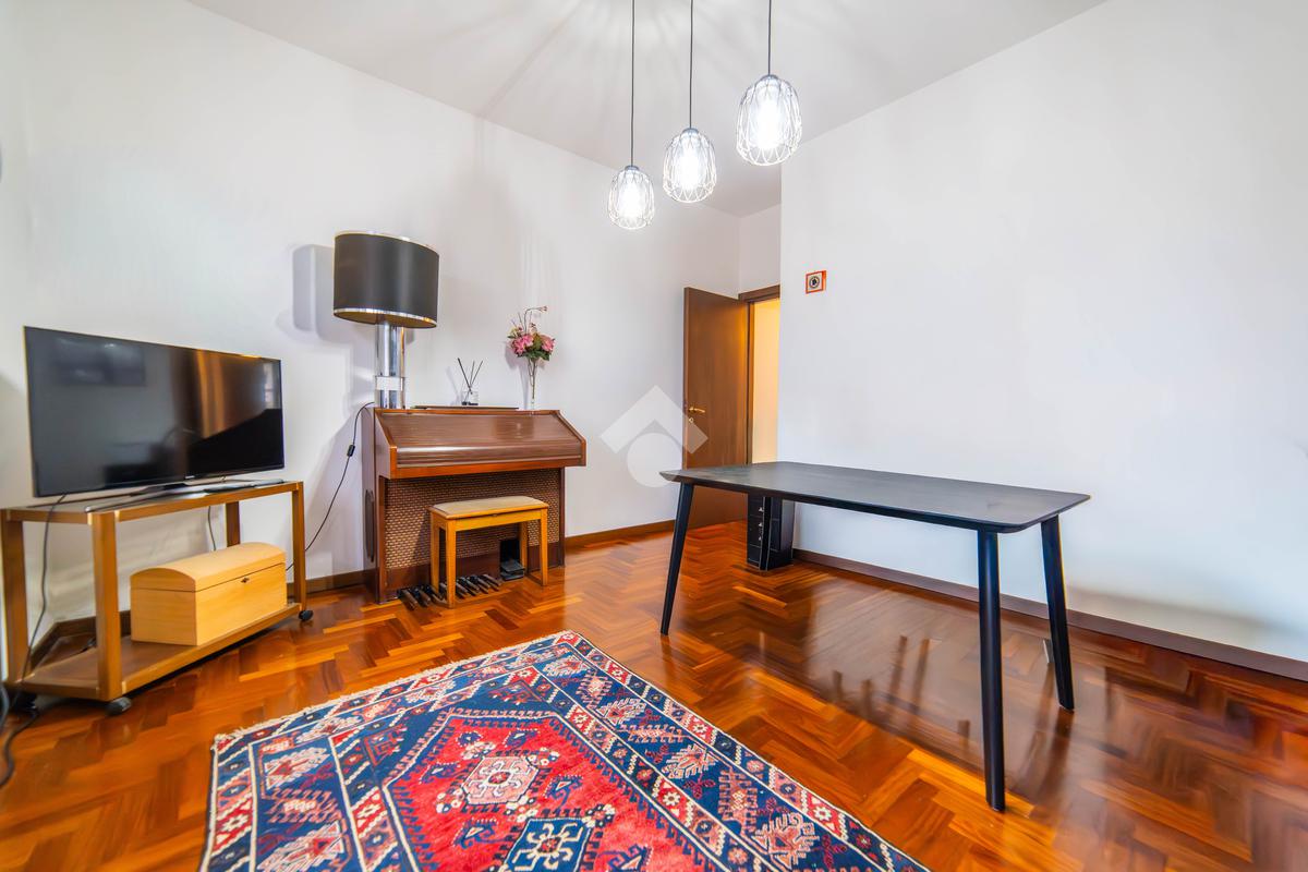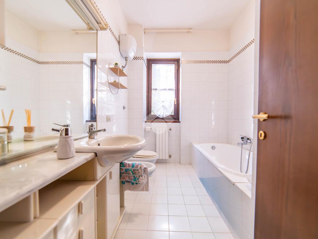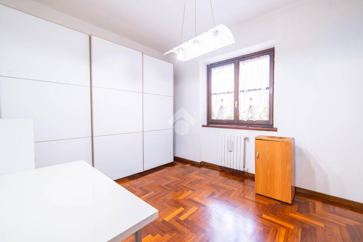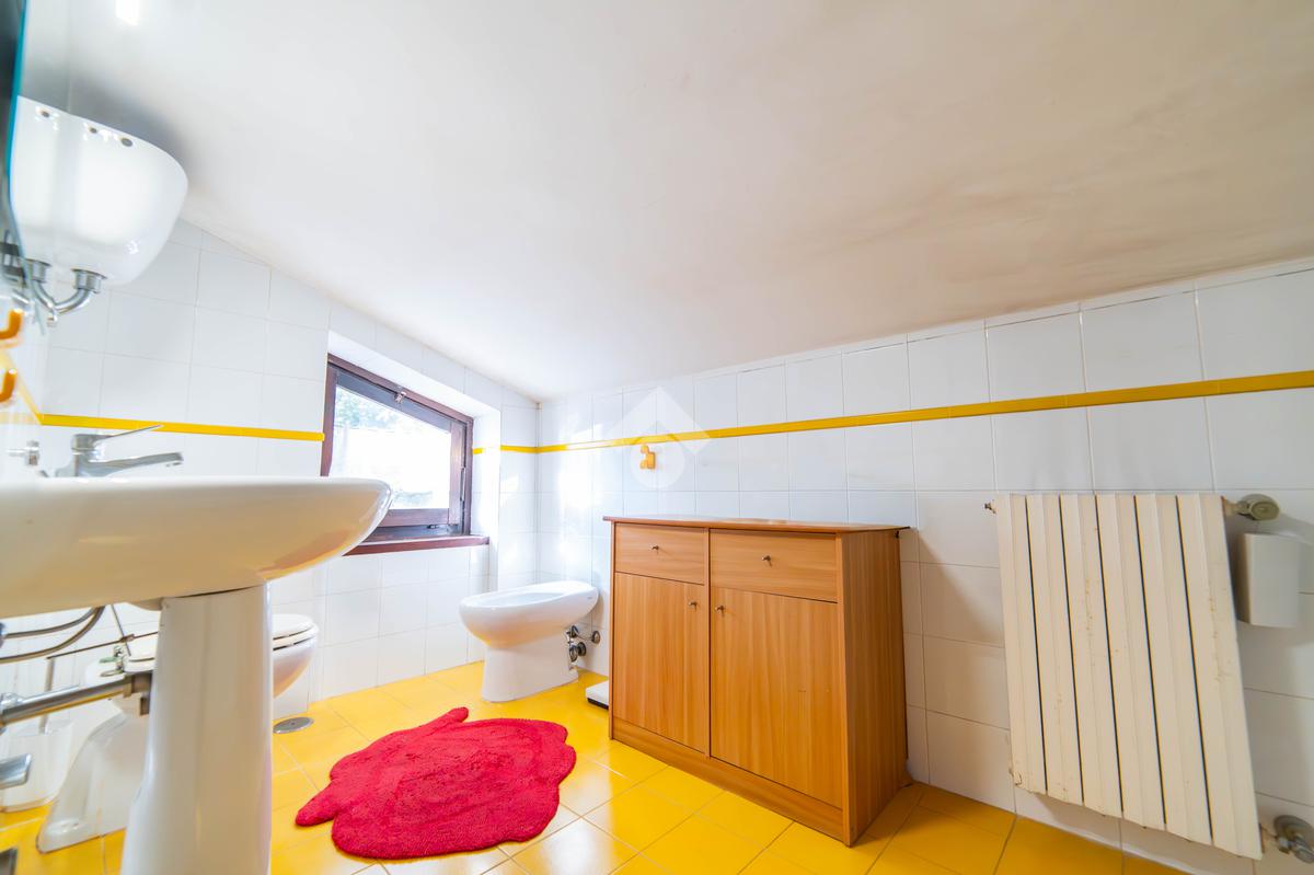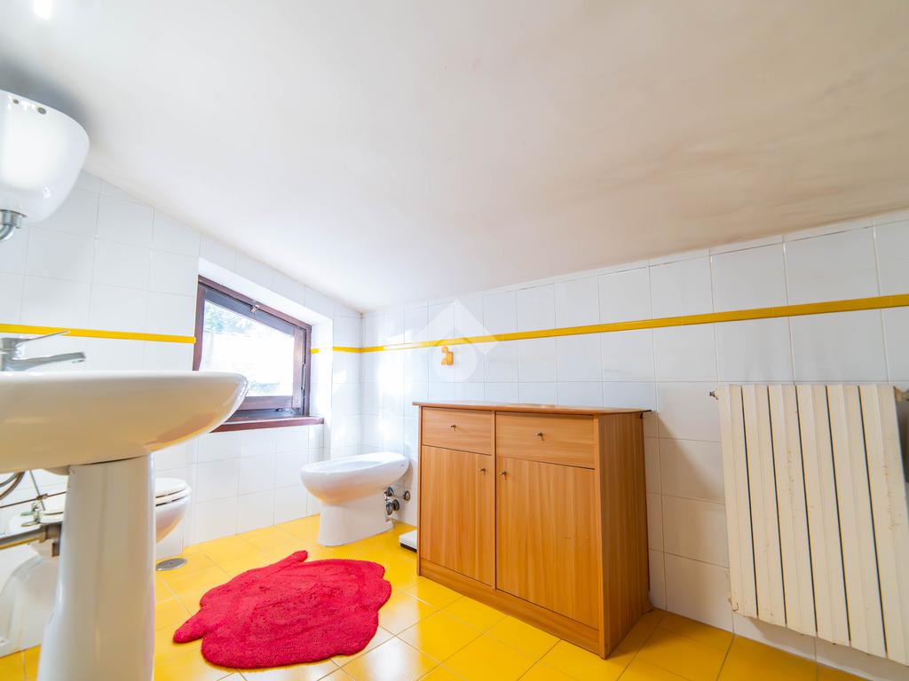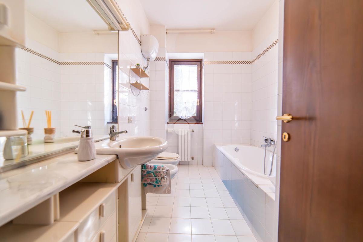 Il piano primo, rifinito in parquet, ospita una seconda zona giorno con cucina e soggiornino arricchito da termocamino Vulcano, con accesso a una terrazza di circa 20 mq dotata di pratico montacarichi per la legna. La zona notte comprende due camere da letto, di cui una con bagno privato, un ulteriore bagno, uno studio e una comoda lavanderia dove si trova la caldaia di recente installazione.