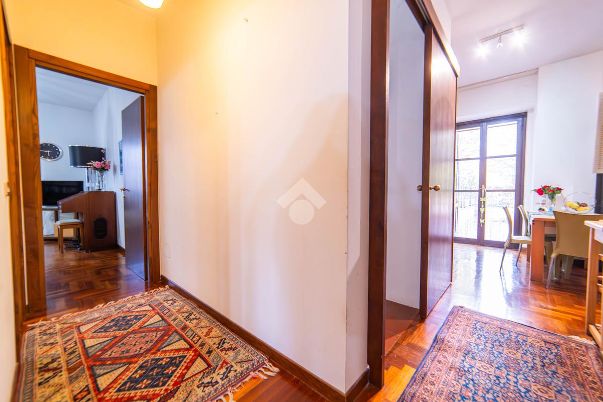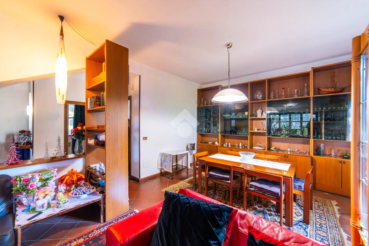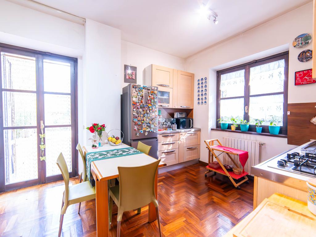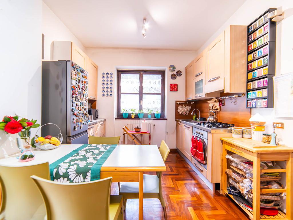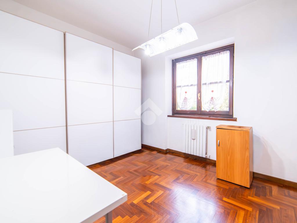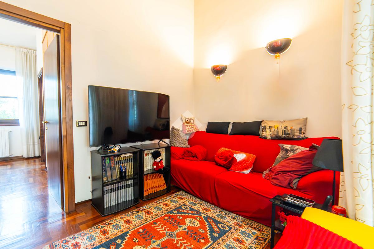 Il piano primo, rifinito in parquet, ospita una seconda zona giorno con cucina e soggiornino arricchito da termocamino Vulcano, con accesso a una terrazza di circa 20 mq dotata di pratico montacarichi per la legna. La zona notte comprende due camere da letto, di cui una con bagno privato, un ulteriore bagno, uno studio e una comoda lavanderia dove si trova la caldaia di recente installazione.