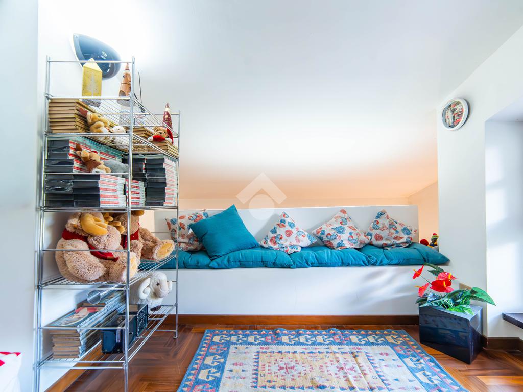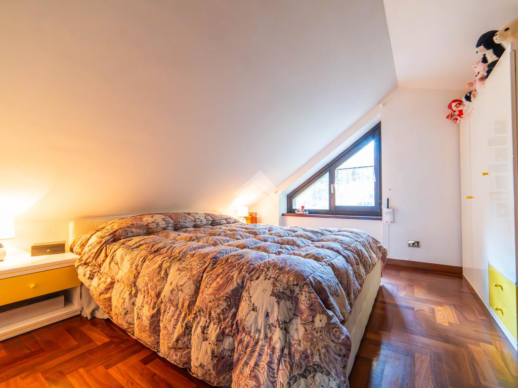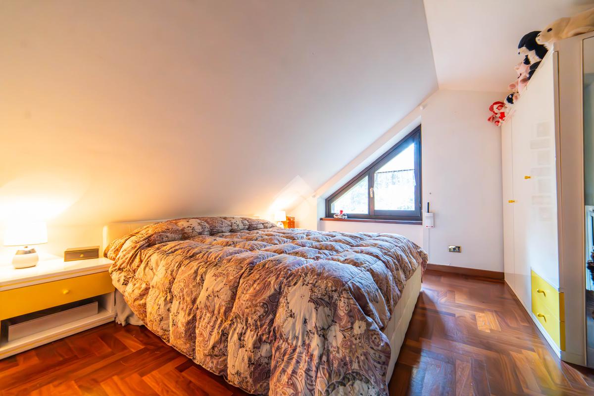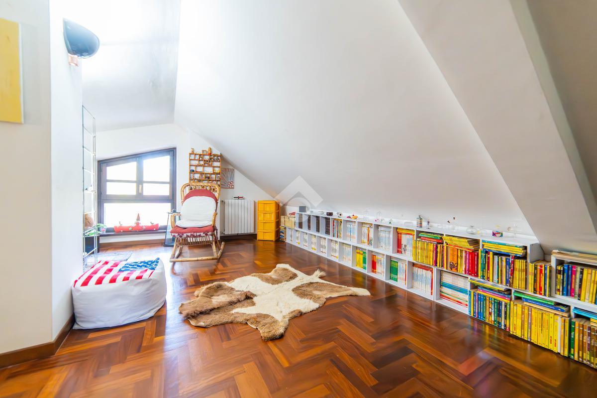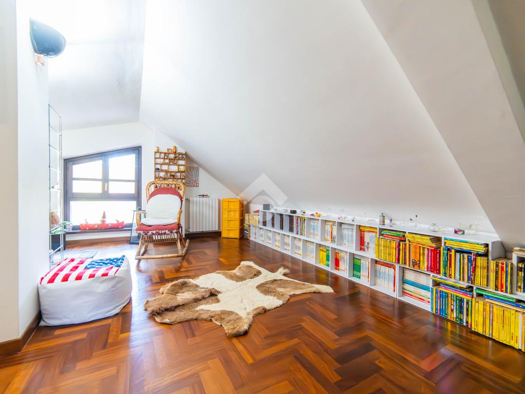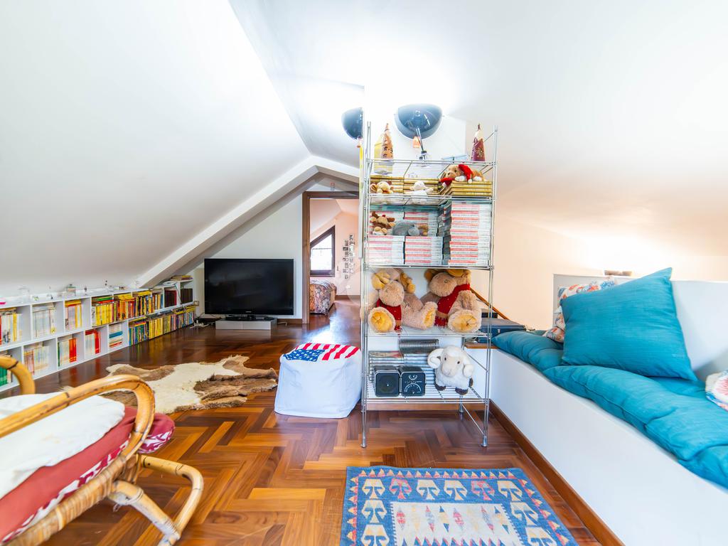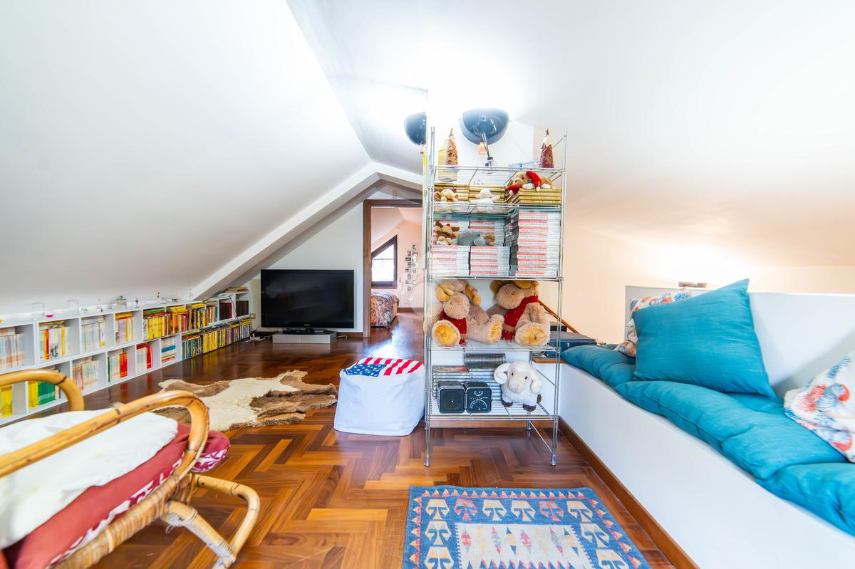 Il piano mansardato è dedicato al relax e alla privacy, con una zona living, una camera da letto con bagno privato e un ampio ripostiglio.