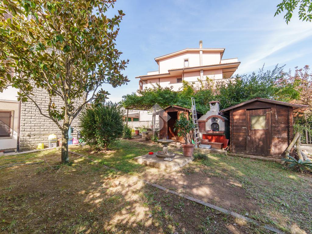 La casa, pronta per essere abitata, è disposta su tre livelli e circondata da un giardino privato su più lati, con cancello carrabile e cancelletto pedonale.